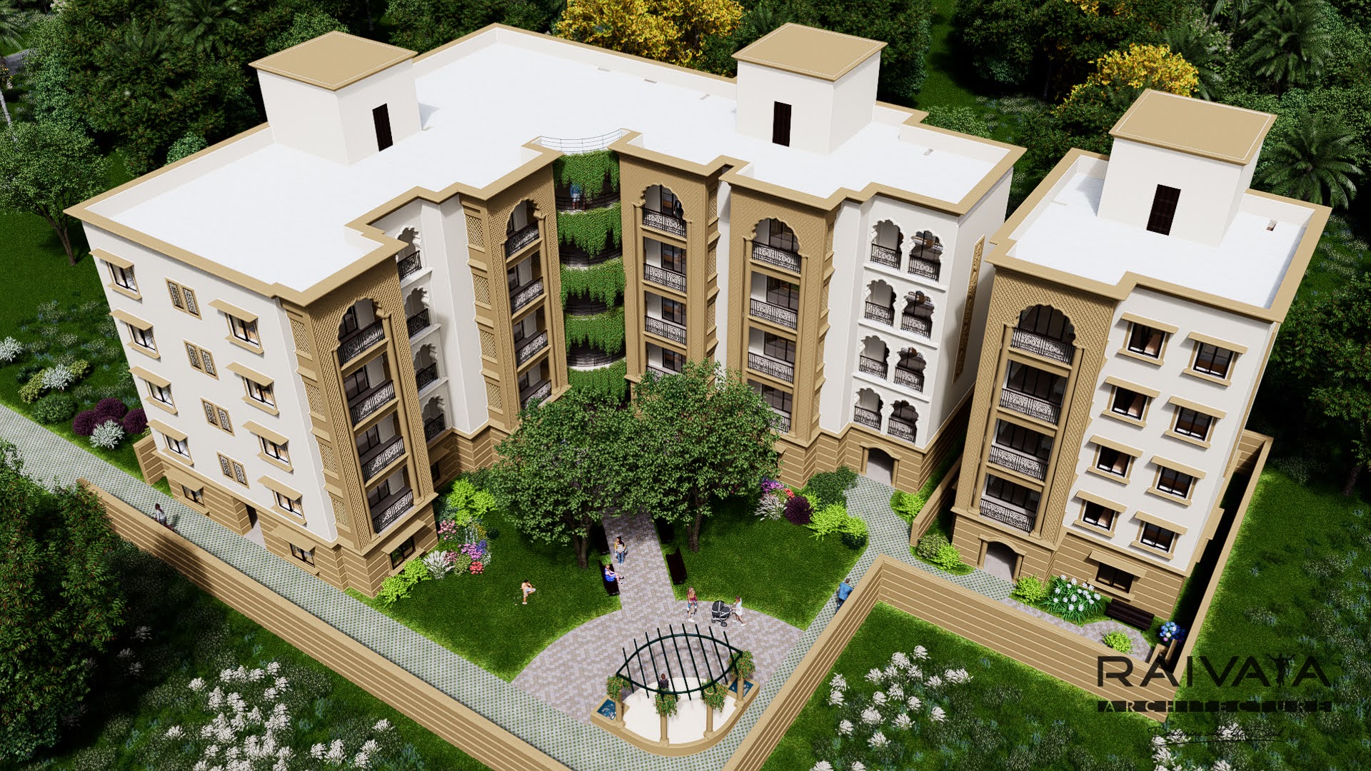 An exclusive residential development featuring studios, 1, 2 and 3 bedroom apartments. Located just 500 meters from the main avenue of the Temple of the Vedic Planetarium. Every residence enjoys uninterrupted temple views, set within a secure campus featuring landscaped gardens, Rajasthan-inspired architecture, premium façade detailing, and elevator access.
